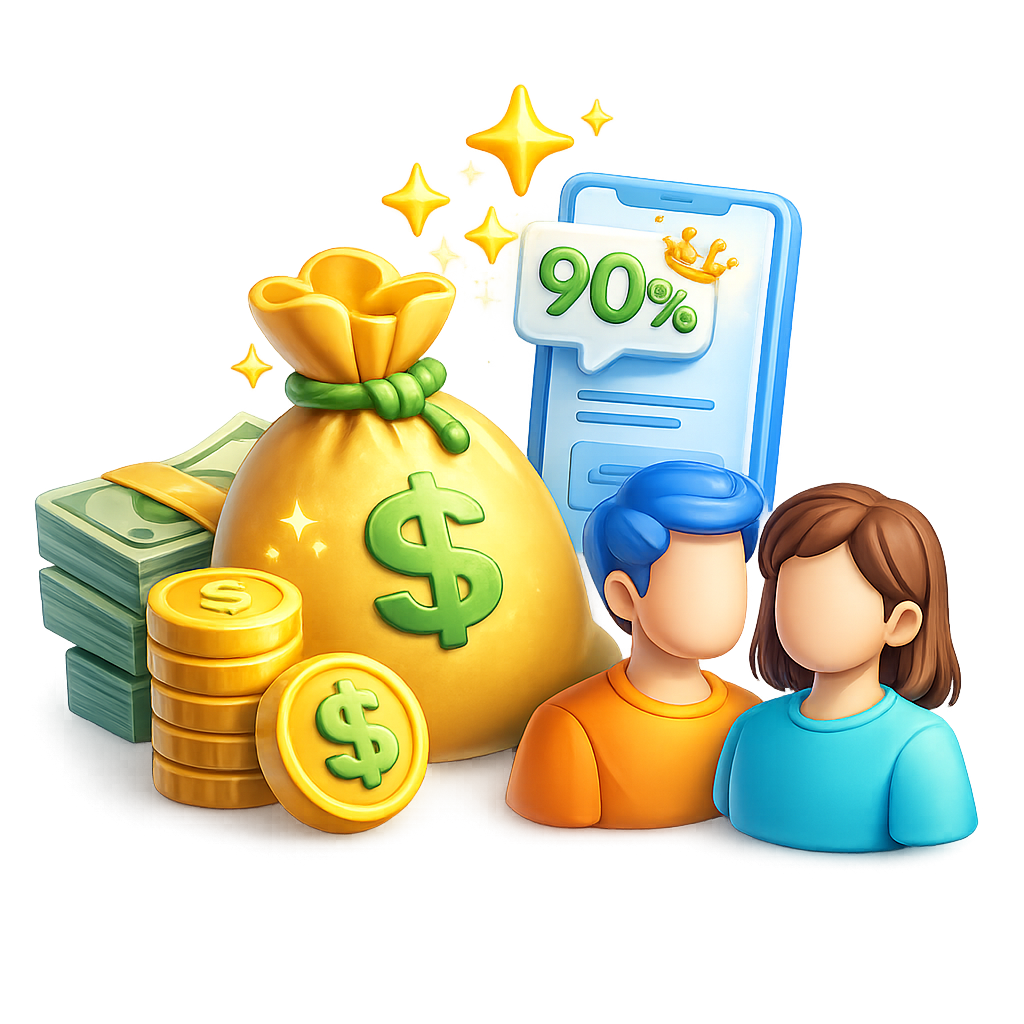 Earn up to 90% of the total amount on each sale.